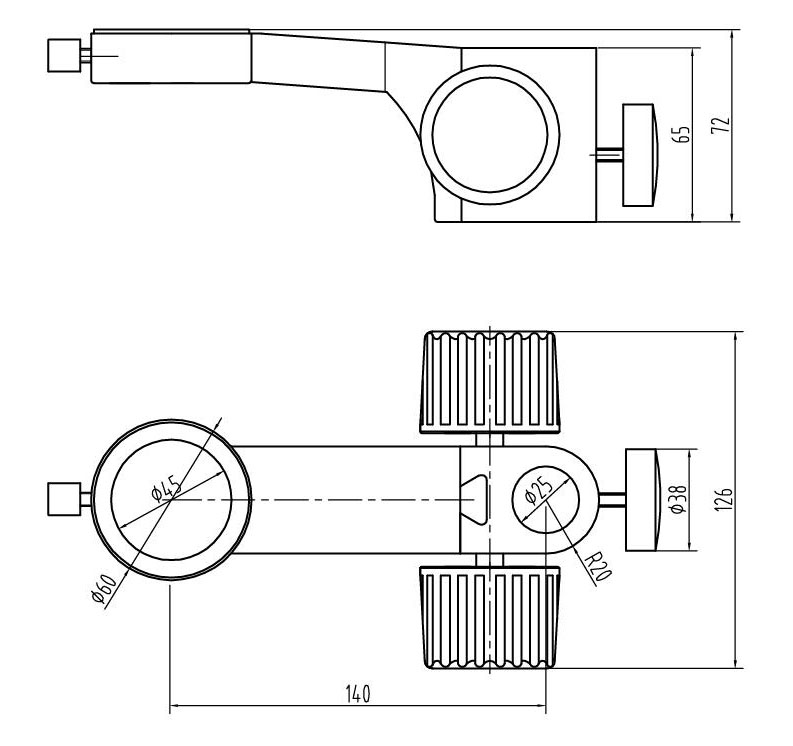 型號名稱:SF5升降組 說明: ● 金屬燕尾滑塊,立柱安裝孔直徑Φ 25mm ● 鏡體安裝孔直徑Φ 45mm ,兩孔中心距 140mm