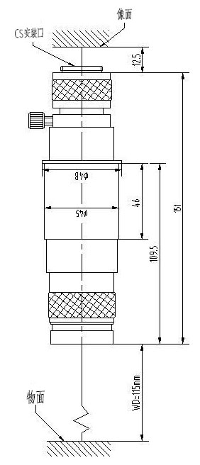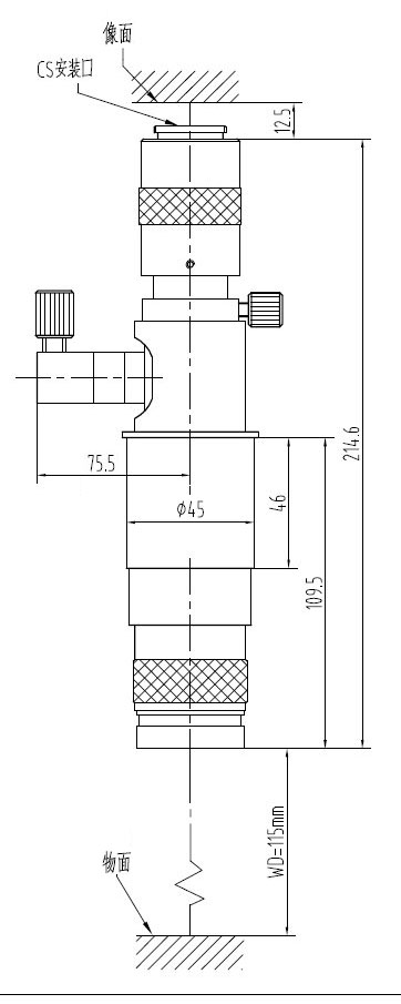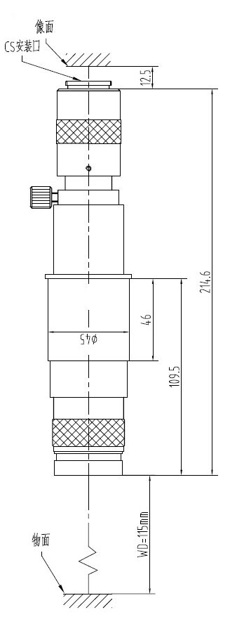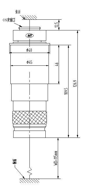 安裝尺寸:Φ45mm 最大兼容相機:1/2" CCD螺紋接口:1英吋32扣